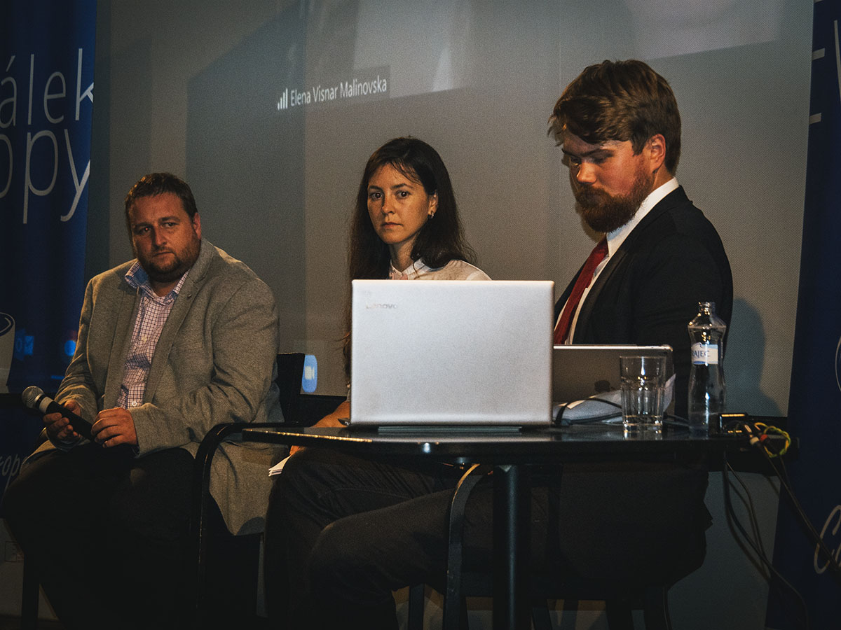 Dospěláci v místnosti v Lucerně 18. 6. s debatou s Tomášem Sedláčkem, foto Jan Frýba